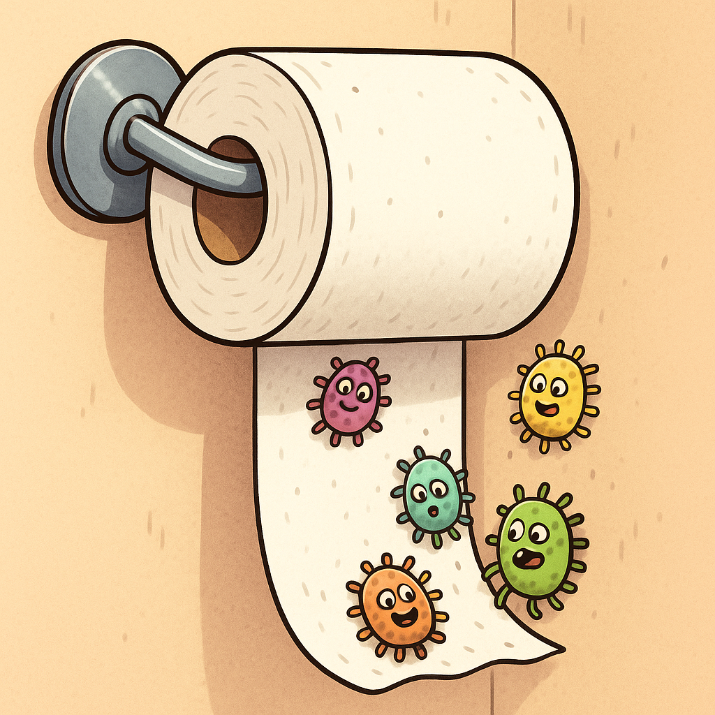 Ifølge en artikkel på Inc.com blir et offentlig toalett et lite mikrobepetrifat, der forskere identifiserte 19 bakteriegrupper på dører, gulv, armaturer, såpedispensere og selve toalettet. Når papiret henger “over”, berører brukeren kun delen av papiret som skylles ned, uten å gnisse knoker mot veggen, noe som reduserer overføring av bakterier mellom vegg og hendene (Inc.com). - Generell logikk: