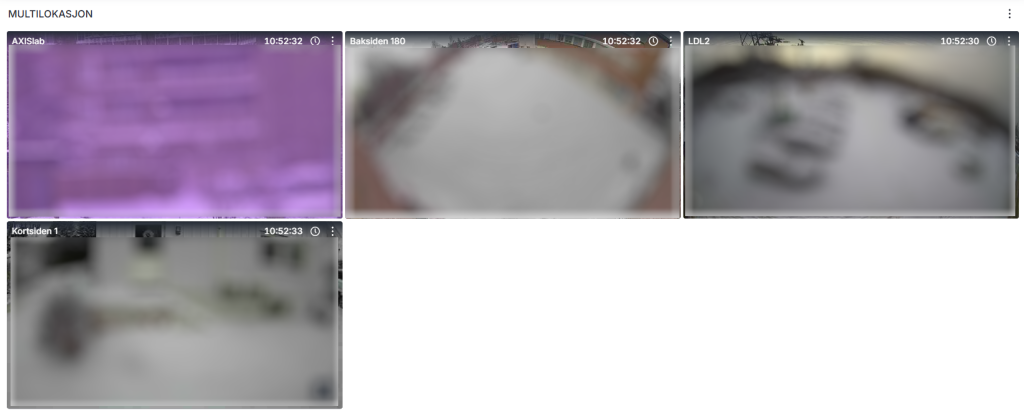 I nettleseren og appen ser man alle kamera og alle lokasjoner pent plassert nedover.
