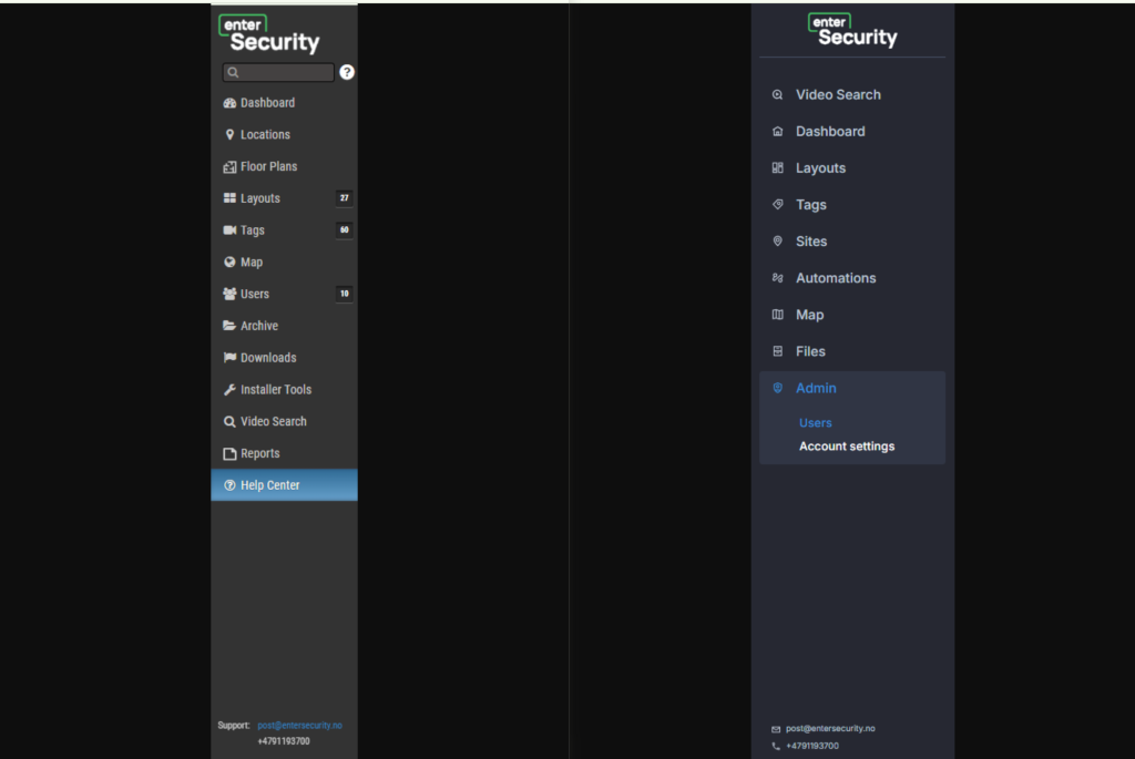Users – Administring av brukere med alle rettigheter og tilganger til lokasjon, layout eller enkelt kamera.